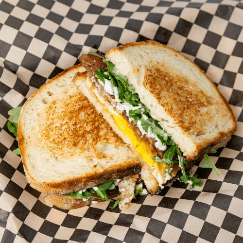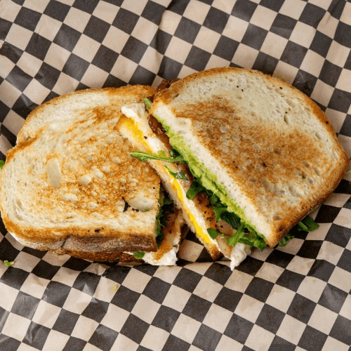 Protein, egg, pepper jack, avocado, house sauce, and arugula