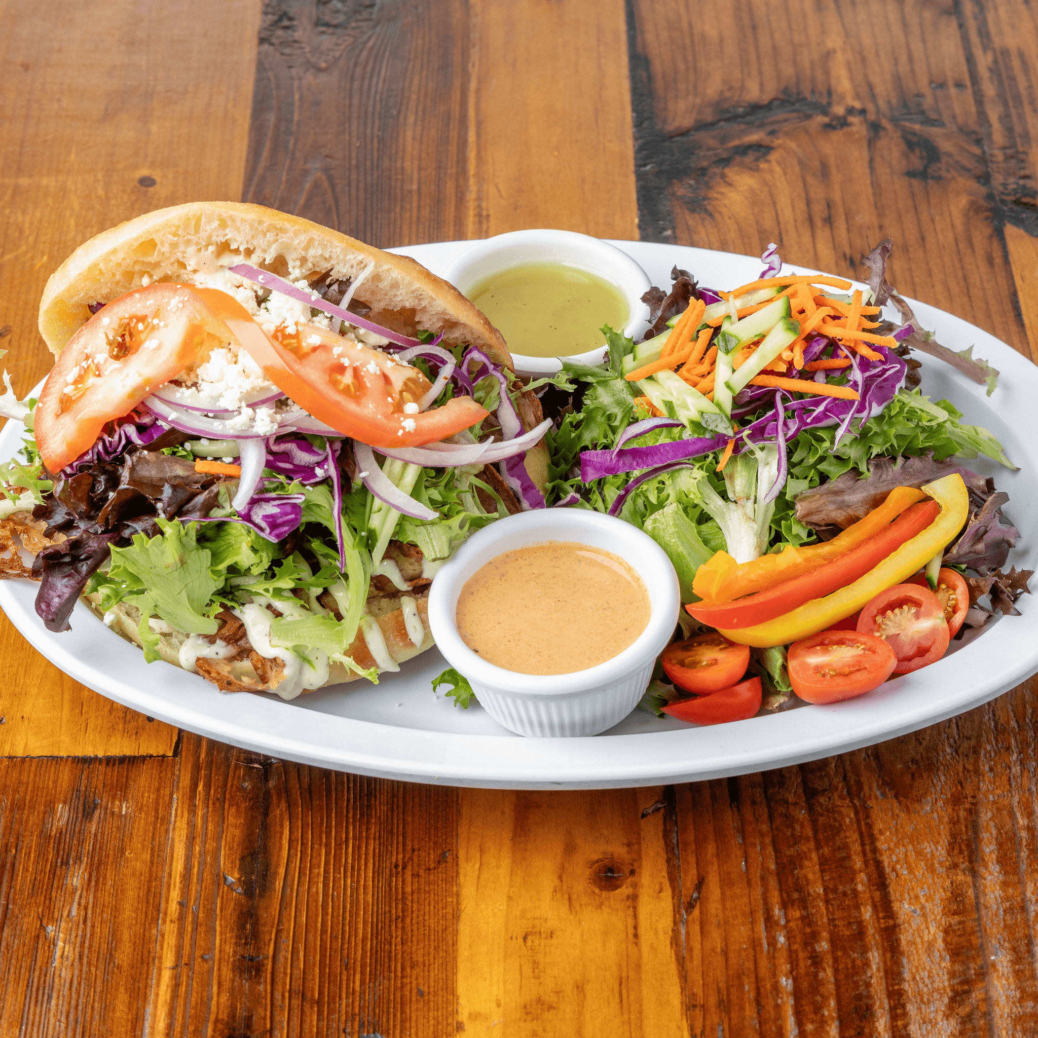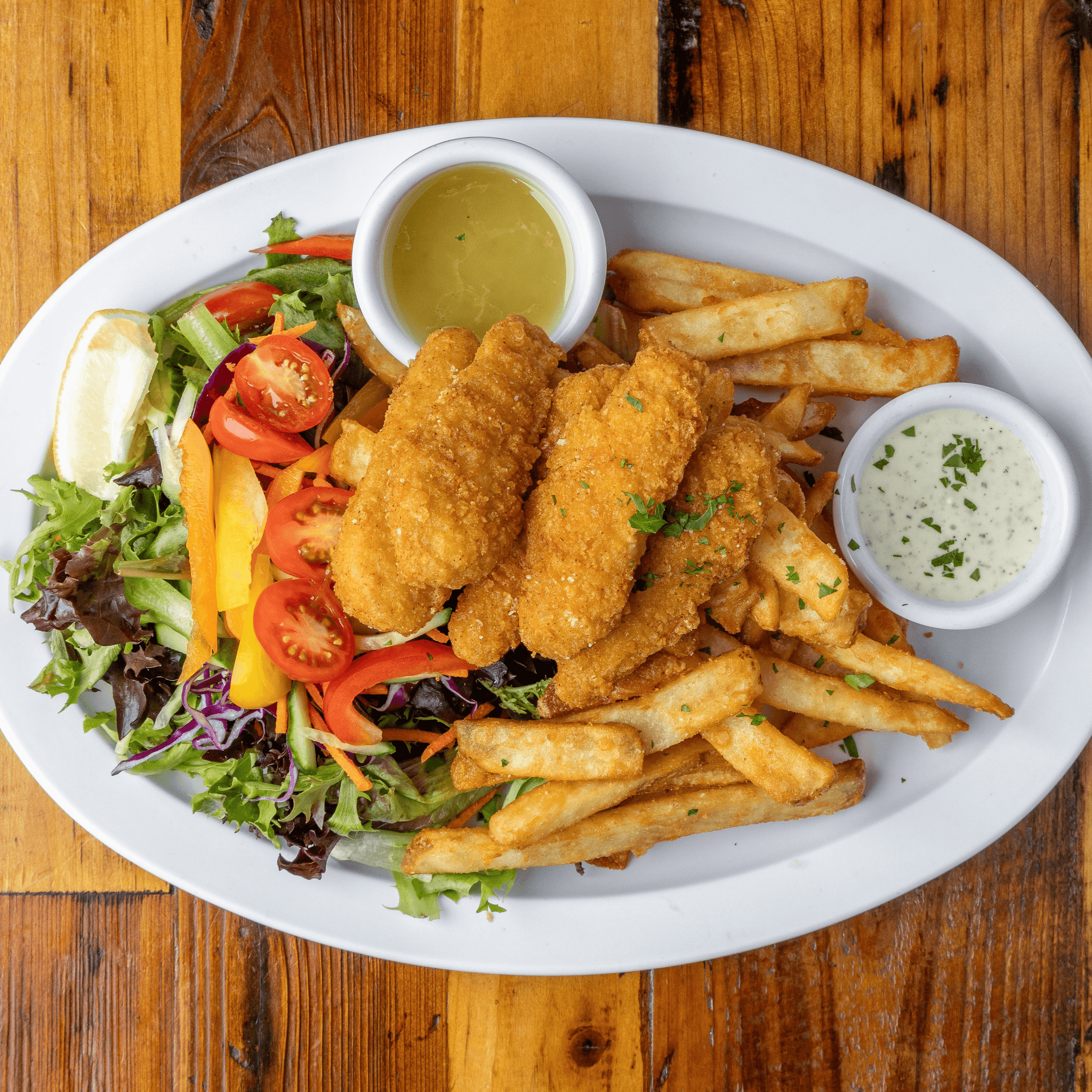 Served with green salad, Pommes frites, and house-made vegan ranch