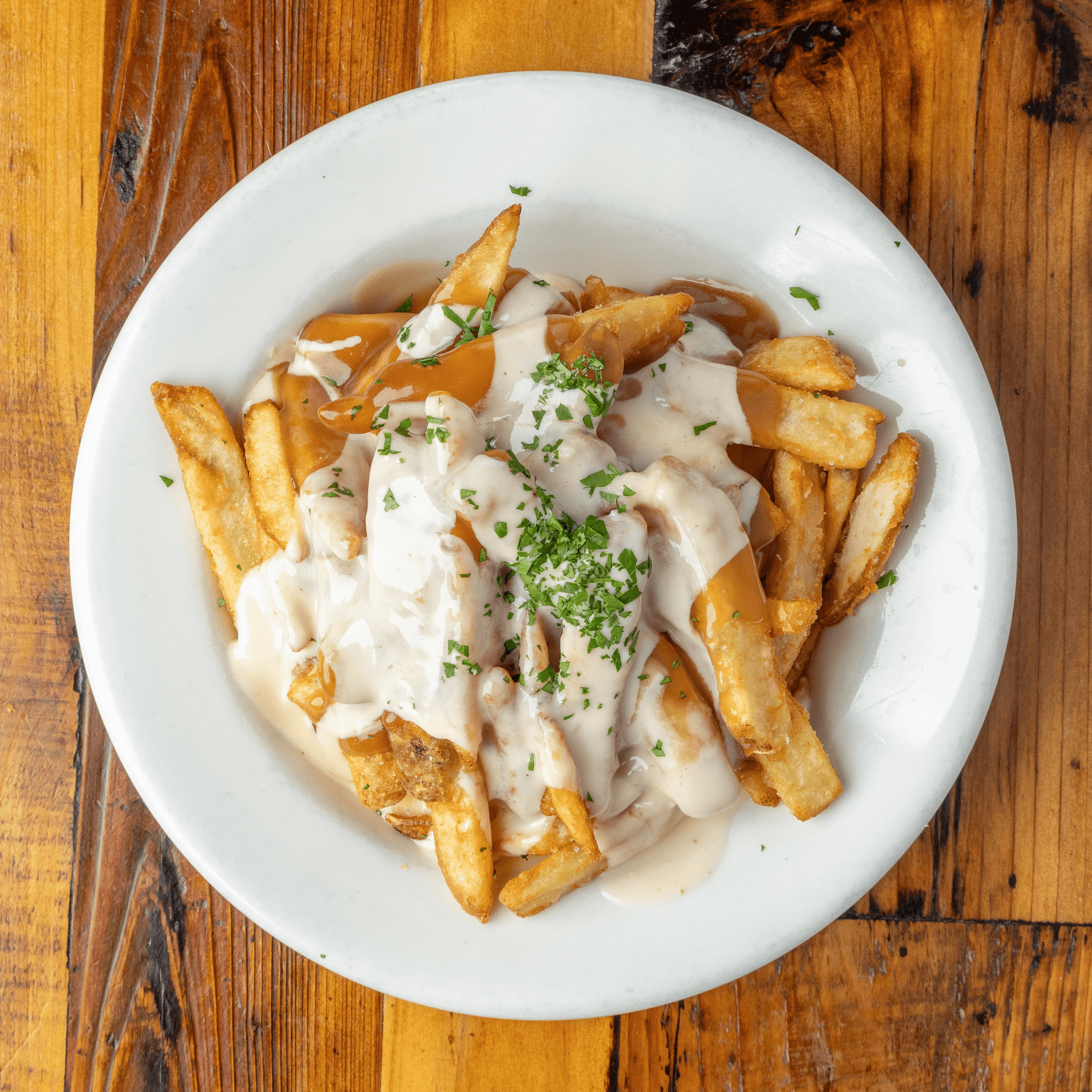 Pommes frites with gravy & Swiss fondue.