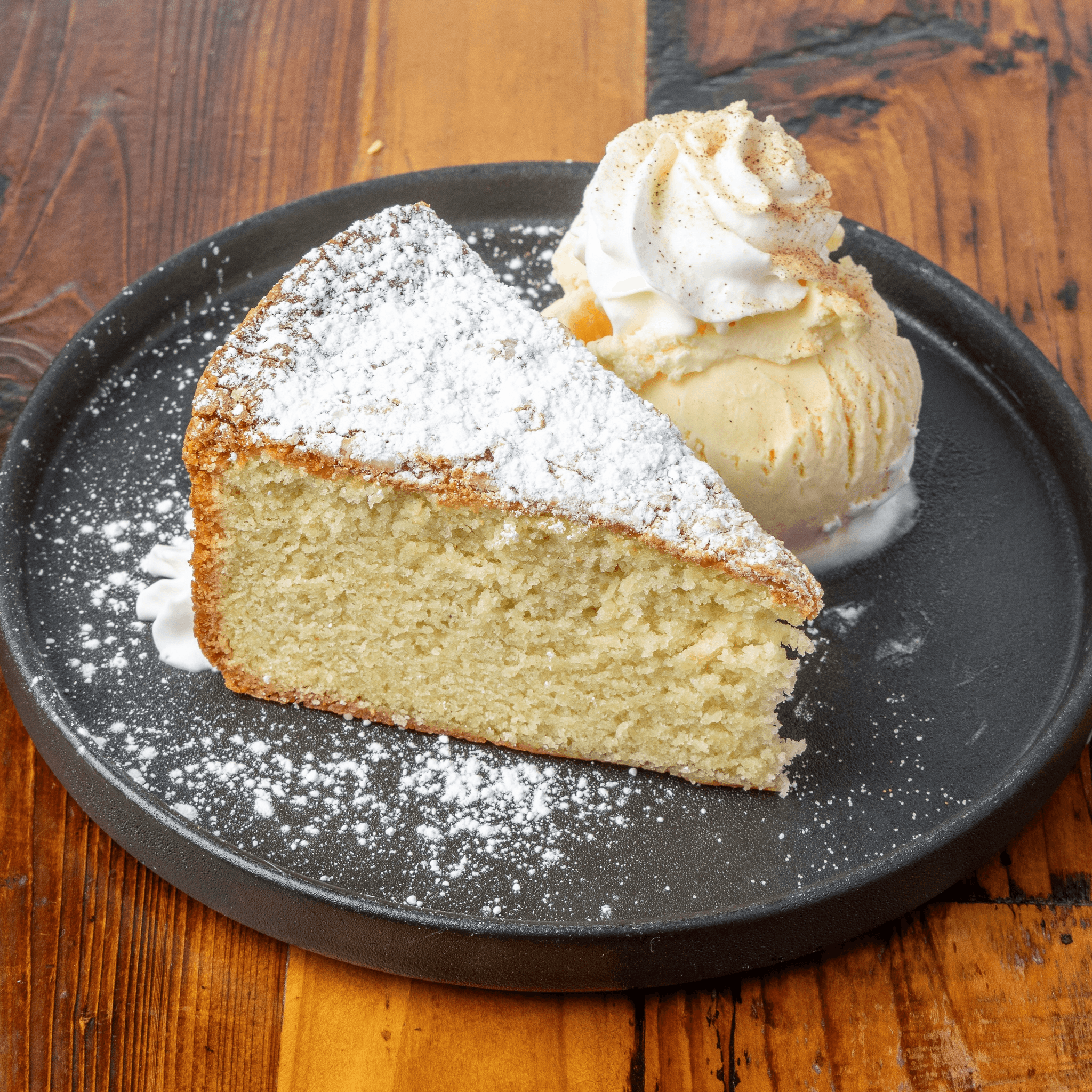 Artisan German cake from Fressen bakery served with vanilla ice cream